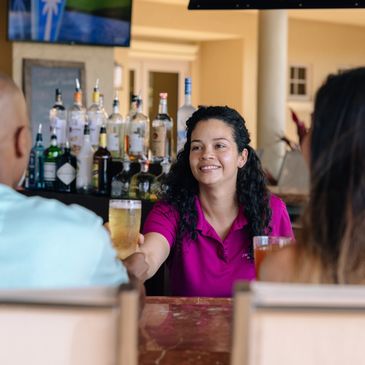 The menus at our beach, Quinn's, and Tiki pools offer something for everyone, featuring a full-service bar, sandwiches, salads, and desserts. Relax and enjoy—no need to leave your seat!
