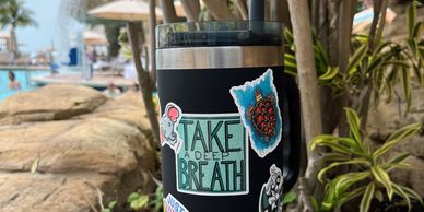 Personalize your 32-ounce insulated water bottle with vinyl stickers to create a bottle that is uniquely yours! This is a great activity for both children and adults.
